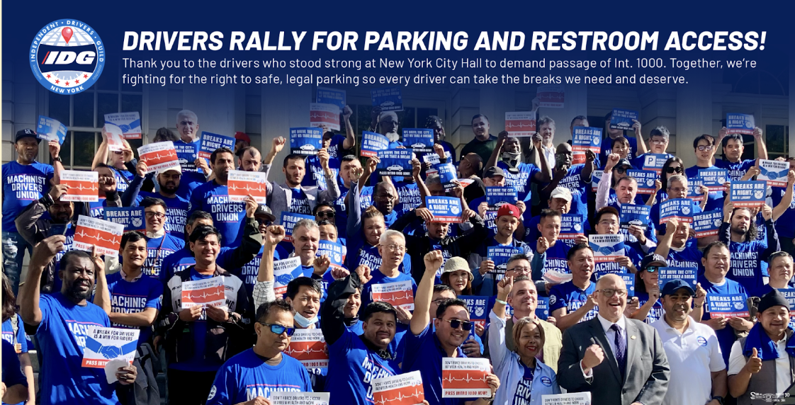 Gracias a los miembros del Independent Drivers Guild que se reunieron en los escalones del Ayuntamiento junto al concejal Justin Brannan y otros miembros del Concejo Municipal de Nueva York para exigir acción ante la urgente necesidad de estacionamientos para conductores de aplicaciones. Juntos, alzamos la voz en apoyo del Proyecto de Ley Intro #1000, que finalmente permitiría a los conductores de Uber y Lyft usar espacios de estacionamiento comercial para descansos breves. Los conductores sostenían carteles que decían “¡Los descansos son un derecho, no un lujo!” y compartieron testimonios poderosos sobre la lucha diaria por encontrar un lugar seguro y legal donde detenerse para ir al baño, comer, rezar o simplemente descansar.